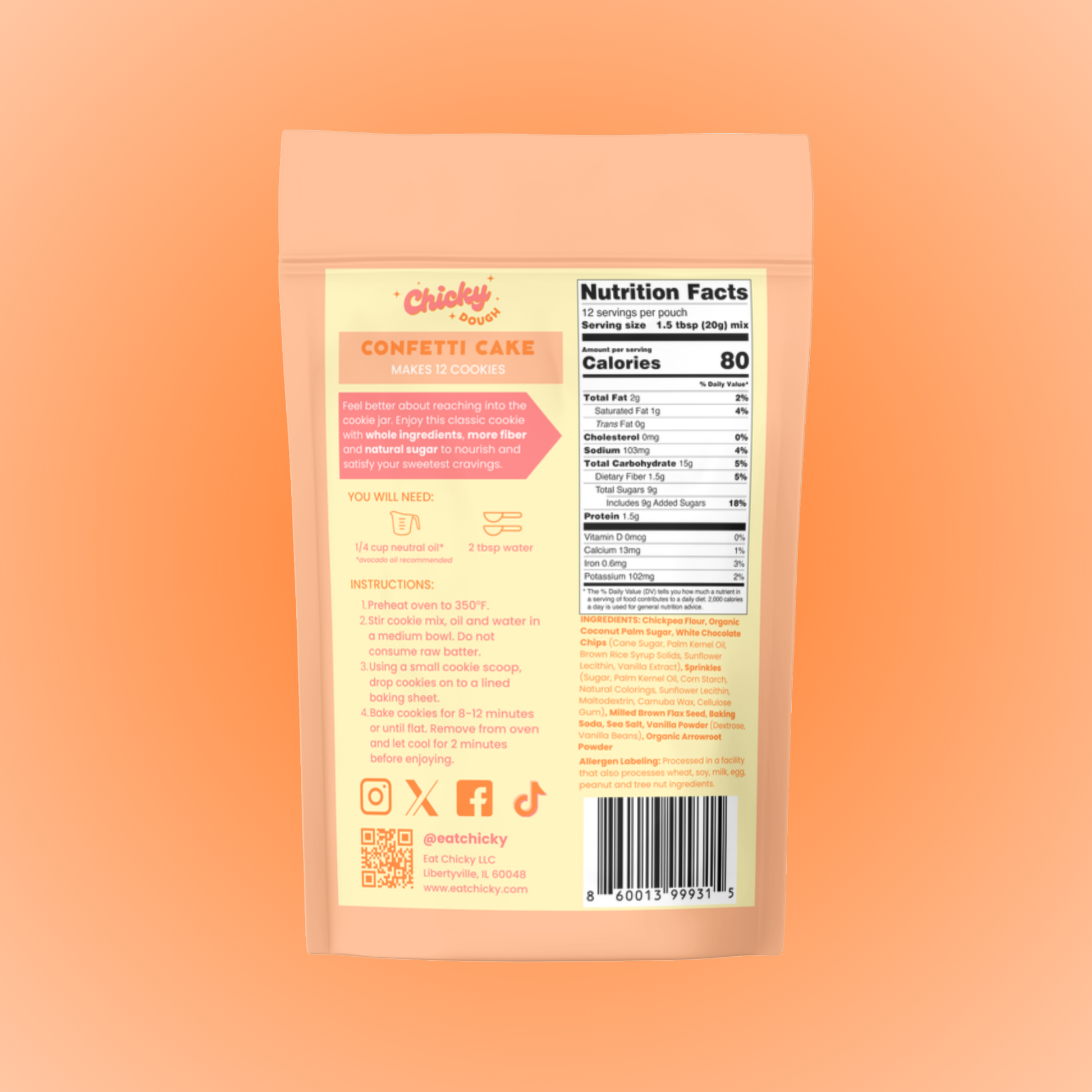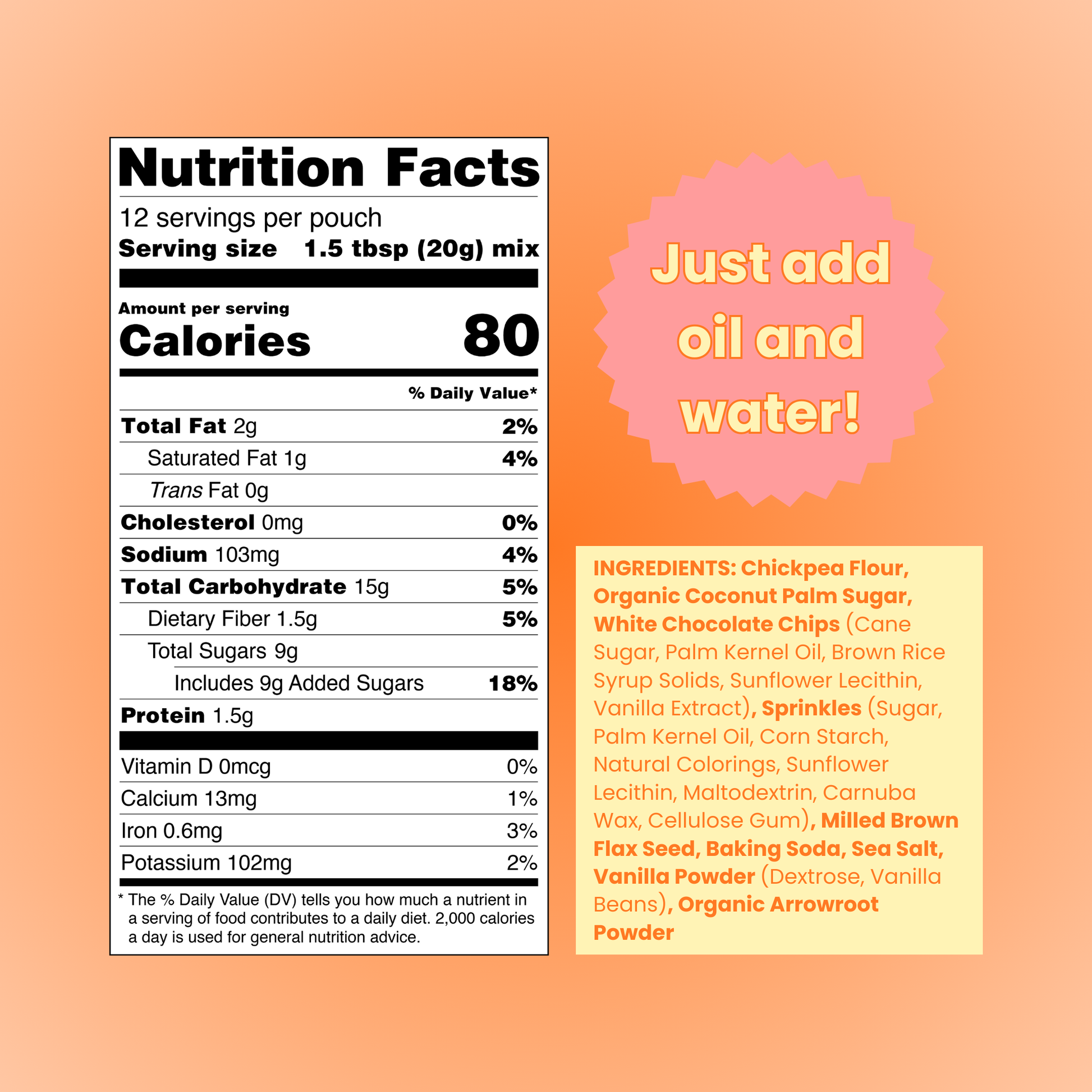 With colorful naturally-dyed sprinkles and a classic vanilla cake flavor, this mix brings nostalgic birthday cake taste—without the processed junk. Made with chickpea flour and naturally sweetened with coconut sugar, it’s a cookie worth celebrating for.